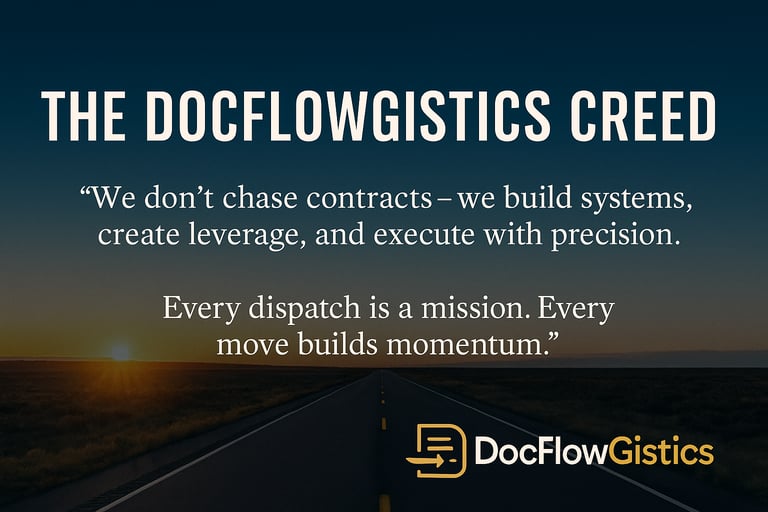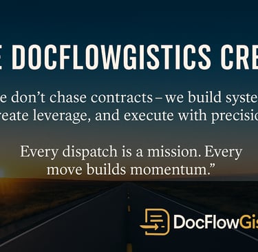 From negotiating rates to managing your back office, DocFlowgistics works as your dispatch partner — keeping you organized, informed, and always rolling toward your next opportunity.